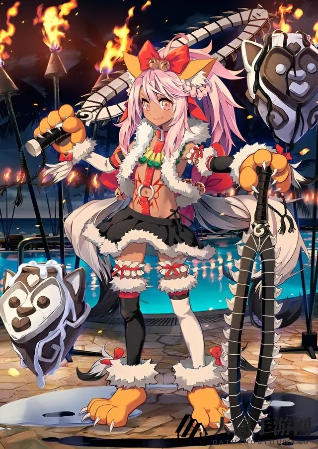 三破后的造型沿用了小黑经典的形象,稍加改动后变成了兽娘造型,可爱至极,仿佛是lily和晒黑版本的玉藻猫。攻击方式狂野而独特,让人不禁佩服这次卡面设计的用心,每一张灵基立绘都别具一格。